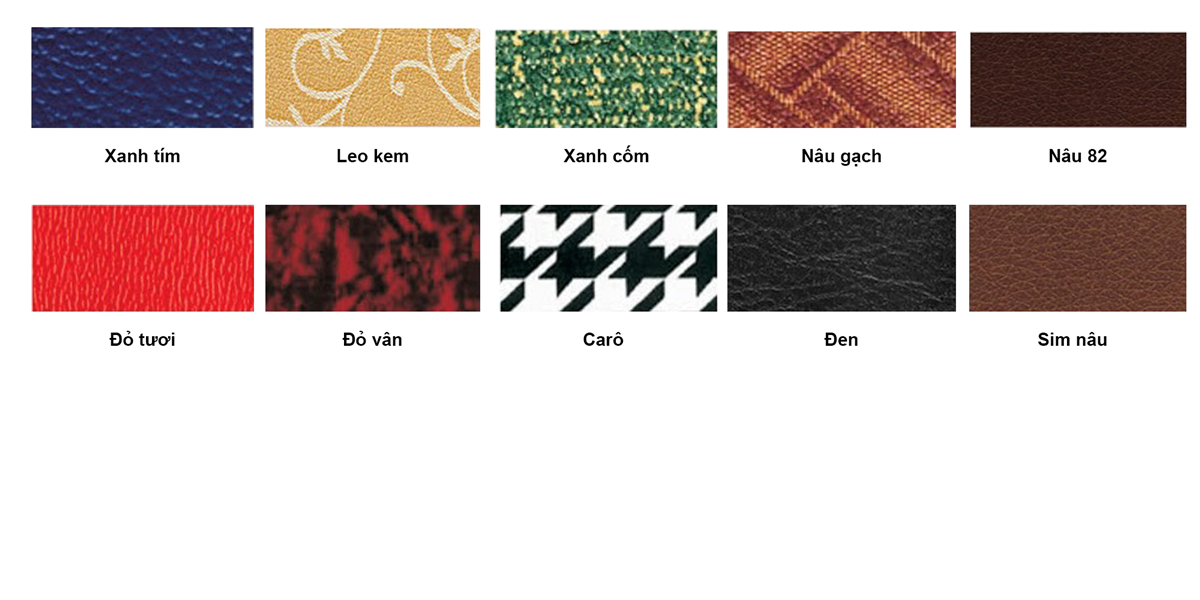 Quý khách có thể lựa chọn một trong số các mẫu màu vải PVC trên